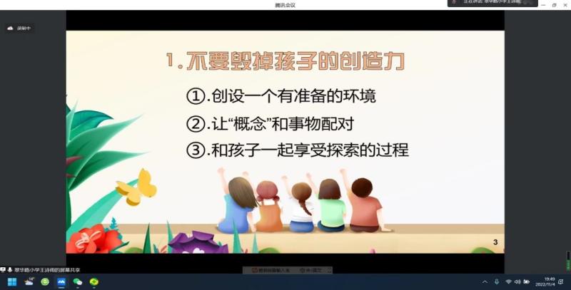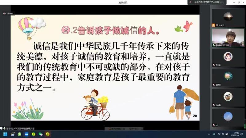 当今“双减”之下,为使公司教育与家庭教育有机结合,更好地形成教育合力,创造良好的育人环境,有效促进孩子健康快乐成长,帮助公司广大教职员工了解掌握家庭教育规律,给青少年儿童的成长造就一个健康适宜的家庭教育环境,2022年11月4日,公司工会特举办了一场主题为”读懂孩子,理解教育-做双减背景下的智慧父母“的家庭教育主题讲座。讲座由公司工会主席王东艳老师主持,翠华路小学王诗雨老师主讲,公司40多位家长在线上进行了聆听。