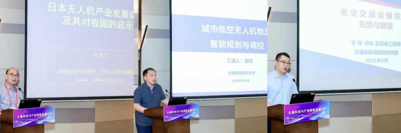 日本工程院外籍院士赵胜川、北京航空航天大学教授田琼、交通运输部规划研究院城市交通与现代物流研究所所长李弢分别围绕日本无人机产业发展动态、城市低空无人机物流智能规划与调控、低空交通运输发展形势及展望等主题作了主旨报告。