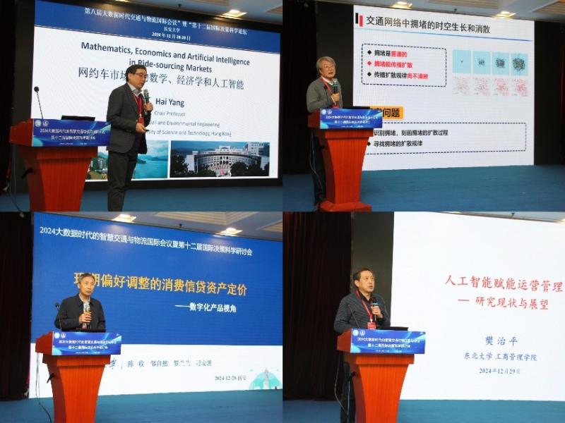 会议为期三天,共计呈现了10场由业内资深专家带来的前沿报告、3场企业论坛、24场分组报告。东北大学唐立新院士、香港科技大学杨海讲席教授、北京航空航天大学经济管理公司黄海军教授、东北大学信息科学与工程公司黄敏教授、湖南大学工商管理公司陈收教授、南开大学人文社会科学研究部常务李勇建副部长、美国德雷塞尔大学Benjamin Lev教授、谢菲尔德大学Francisco Saldanha da Gama教授、西南交通大学经济管理公司韩科经理、东北大学工商管理公司樊治平教授、电子科技大学机械与电气工程公司刘宇经理、国家能源集团港航专业首席专家李长安高级工程师、北京嘀嘀无限科技发展有限公司丁俊强总监、陕西延长石油道奇物流科技有限公司顾鑫副总经理等十三位专家分别就“制造循环工业系统物流解析与优化”、“面向按需出行服务的数学”、“基于大数据分析的城市交通拥堵的生长与消散特征”、“经济学与人工智能”、“物流网络设计中的设施协作规划”等议题进行了深入的探讨与分享。