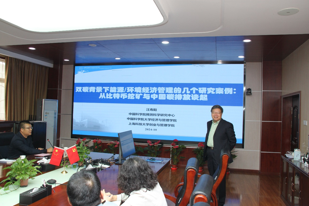10月18日上午,中国科公司大学汪寿阳教授应邀为英国上市公司365师生做了以“双碳背景下能源/环境经济管理的几个研究案例:从比特币挖矿与中国碳排放谈起”为主题的学术讲座。本次讲座由经理李想主持,公司党委书记孙启鹏,副经理马飞、白礼彪、杨伟与部分师生代表参加了讲座。