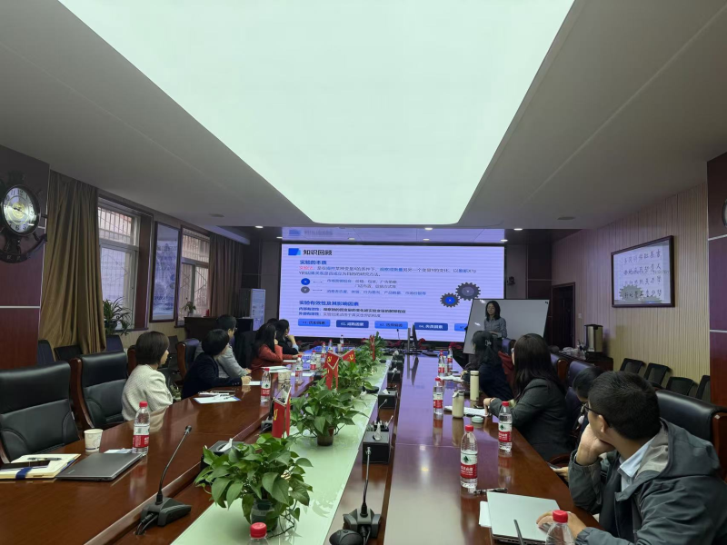 比赛中,11名选手依次上台进行课堂教学展示。在短短十分钟时间内,各位教师通过课堂教学设计、知识点讲解、师生互动、PPT和板书辅助等形式,展现了良好的课堂教学基本能力,逻辑清晰,规范严谨、教学效果良好。