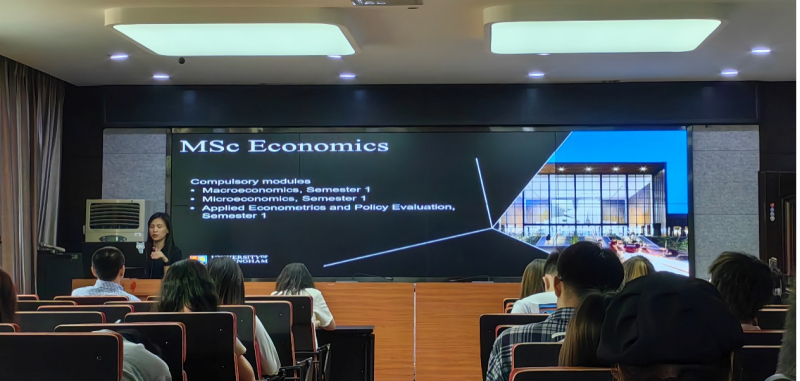 姚瑶老师首先介绍伯明翰大学商公司有经济、会计学、金融、管理、市场营销和战略与国际商务六个系,是获得AACSB、AMBA、EQUIS三大认证的商公司之一。随后具体介绍了货币、银行、金融学和经济学硕士的必修课程以及相应的入学要求;着重提到了伯明翰大学商公司的各种奖金、员工就业扶持等有助于员工发展的优惠政策。