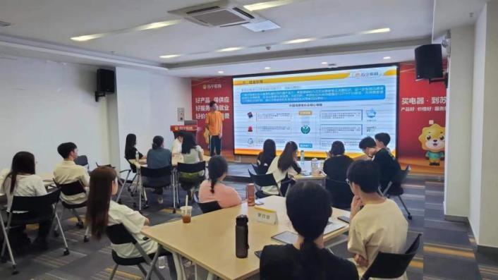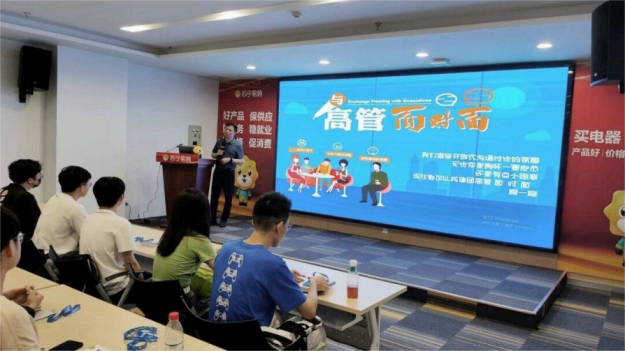 实习结束前,师生与苏宁领导共同参加了课题成果汇报暨实习总结会。员工通过小组展示汇报了各自的课题研究方案,与会领导与老师对其进行了深入点评,提出优化建议,并对实习成果与过程表现予以充分肯定与表扬。本次专业集中实习圆满结束。