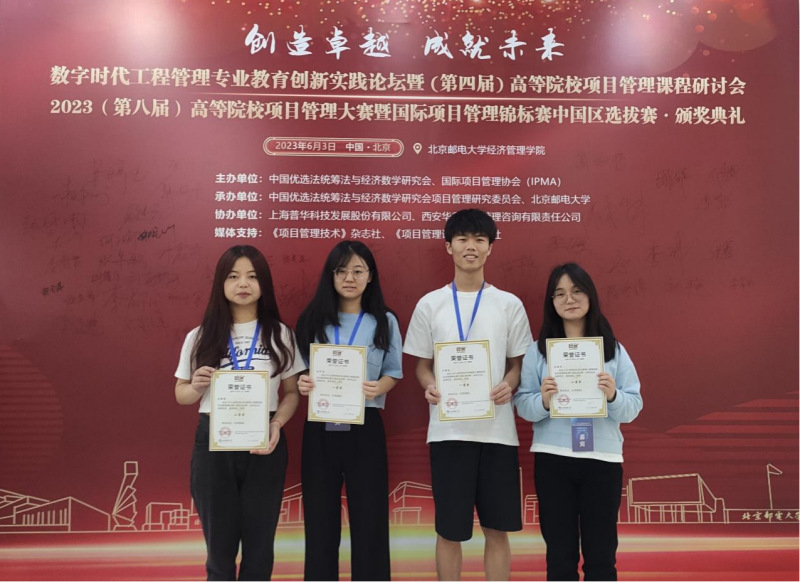 该届全国高等院校项目管理大赛是由中国优选法统筹法与经济数学研究会和国际项目管理协会(IPMA)主办,中国优选法统筹法与经济数学研究会项目管理研究委员会(PMRC)和北京邮电大学承办。大赛旨在推动项目管理理论知识和实践成果在中国高等院校青年老员工中的普及和应用,为高等院校开展项目管理理论与实践教学交流搭建平台,推动培育具有国际视野和系统思维、具备独立思考和自由探索精神、善于开拓和勇于创新的中国项目管理青年后备人才。通过参加此次比赛,参赛同学们提高了团队合作意识和项目管理能力,并在一定程度上掌握了项目管理理论知识。