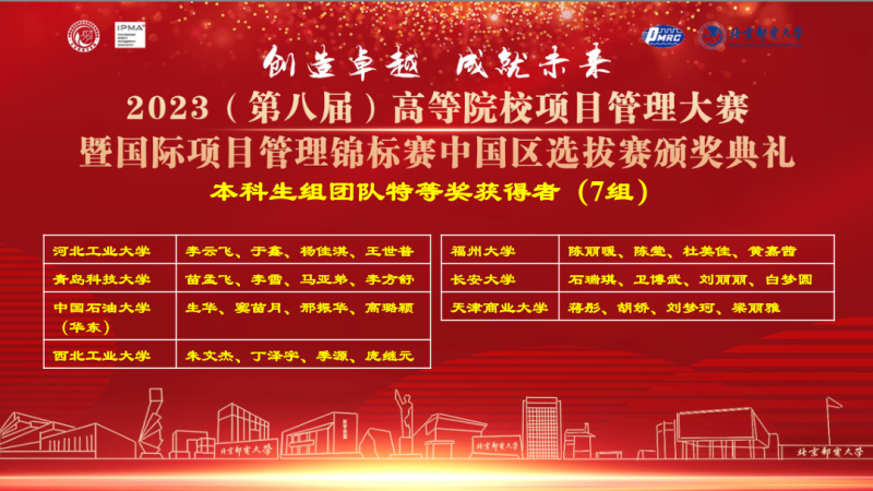 第八届高等院校项目管理大赛暨国际项目管理锦标赛中国赛区选拔赛于2023年5月28日在线上举行,已圆满落幕。本次大赛共有来自清华大学、北京大学、西北工业大学、中国石油大学、英国365公司官网、北京邮电大学等全国各地92所高校的206支代表队,共1063名员工参加。