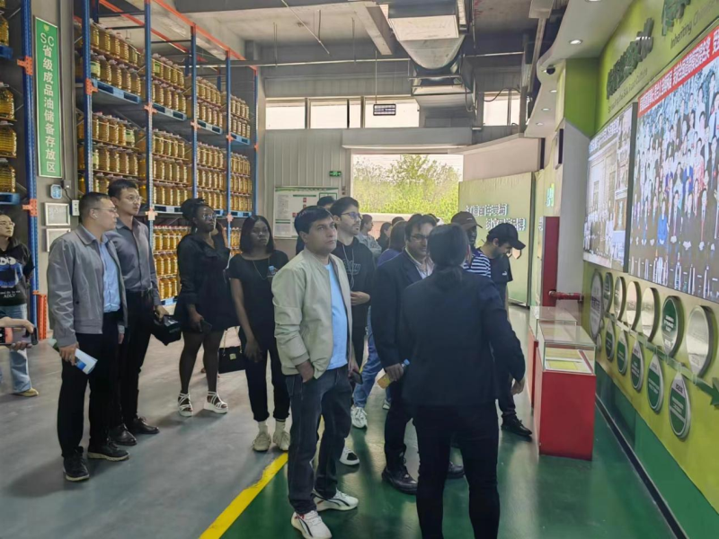 调研团首先来到西安爱菊集团,爱菊集团是一家集粮油、熟食品和豆制品加工、物流配送、粮油储备、连锁网点、经营销售等产储销为一体的综合性粮油集团。企业讲解员详细介绍了爱菊集团的发展历程、运营模式和管理理念,同学们感受到爱菊集团全产业链整合模式的成功。随后,职工深入到车间、仓库等生产和服务环节,参观了企业机械化、智能化、精细化的生产模式,看到爱菊机器化生产和智能化仓储时,职工们赞叹不绝。调研团还参观了爱菊科普馆、爱菊超市、爱菊饮食体验中心,爱菊超市里涵盖了许多“一带一路”沿线国家的特色产品,职工们看到有自己国家的产品都十分欢喜和自豪,同时感慨中国企业对“一带一路“发展的贡献,感受到中国的强大与开放。