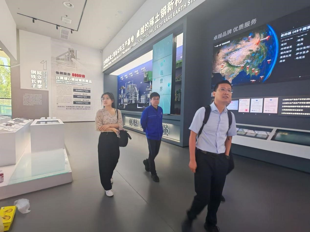在包钢集团,一行人走进企业展陈馆,通过承载着岁月印记的丰富史料,感受企业深厚的历史底蕴,也了解到企业在绿色低碳转型道路上的坚实步伐与卓越实践。双方围绕钢铁产业绿色发展趋势、人才需求标准以及校企合作模式等话题展开了深入探讨,白礼彪详细介绍了公司在相关专业领域的人才培养优势,企业负责人也表达了对高素质专业人才的迫切需求。