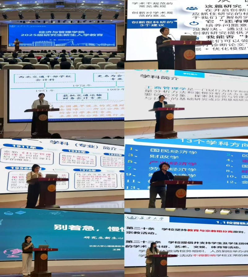 为引导公司研究生新生尽快适应学习和生活,帮助新生完成角色转换、明晰奋斗方向、夯实学业基础,9月29日上午,英国上市公司365在南校区学术交流中心报告厅开展2025级研究生新生入学教育,公司全体硕博新生200余人参与,统计系主任晏文隽教授、会计系云虹教授、工商管理系主任周茵副教授、经济系主任孙铭副教授、管理科学与工程学科张熠沛副教授、心理健康教育与咨询中心王赟老师、研究生辅导员李杭航参加会议。