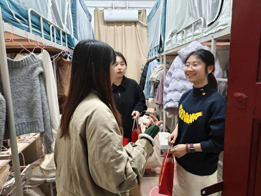 12月10日晚上,公司领导、毕业年级辅导员与员工志愿者轻步走访考研学子宿舍,与备考学子们亲切交谈,详细询问复习进度、备考状态及生活需求,反复叮嘱学子们注意防寒保暖、合理规划作息,以饱满精神与良好心态迎接考试。