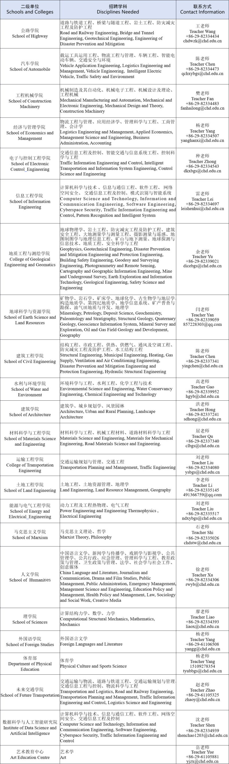 The bell of the Wild Goose Pagoda rings, the waves of the Weihe River flows through vast regions, and the Taibai Mountains stretches over large territory. CHU currently attaches great importance on implementing the strategy of rejuvenating the university with talents, speeding up the pace of building the world-class university with leading disciplines, and striving to establish itself as a research university with distinctive characteristics and international reputation. Being open-minded, inclusive and aspiring for talents, CHU will embark on the journey to seek for talents and make every effort to build a promising career development platform for young talents from home and abroad. Now we sincerely invite outstanding scholars and professionals at home and abroad to join us.