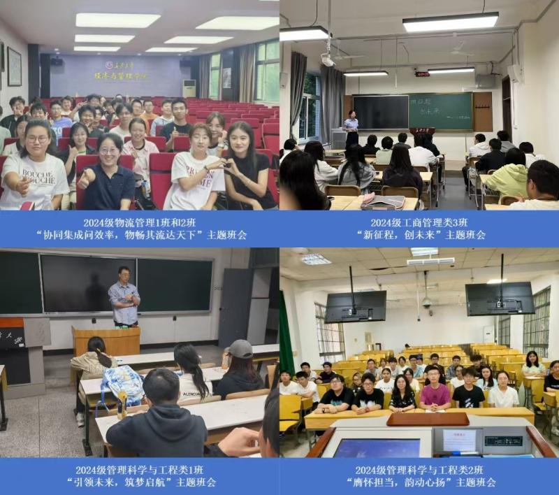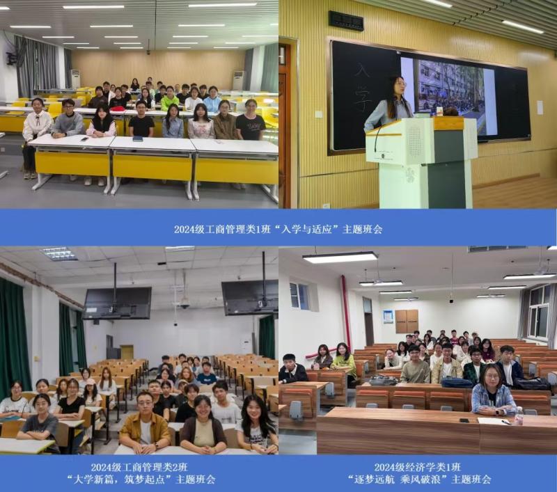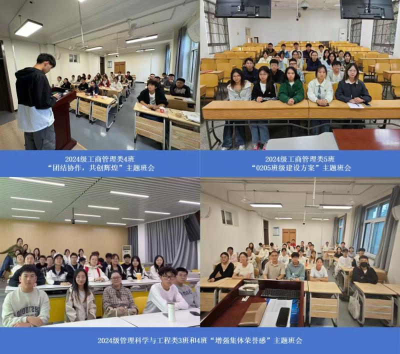 团结一心齐奋进,携手共创卓越班。工商管理类四班、五班、管理科学与工程类三班、四班,立足“班级建设和团队发展”召开主题班会。以文明班集体建设为切入点,阐述班级建设目标和愿景,明确班级文化和发展细则;班委成员依次述职,号召员工积极参加集体活动,增强集体荣誉感,凝聚班级力量,共同营造一个积极和谐的学习和生活氛围。