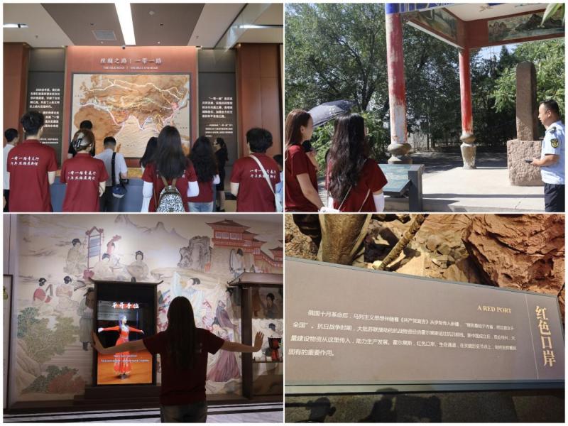 重走路线,开放实践显活力。实践队前往乌鲁木齐国际陆港区,沿着习近平总书记的足迹,在讲解员的带领下亲身感受新疆从相对封闭的内陆变为对外开放的前沿的历史跨越。实践队员站在习近平总书记曾经视察的点位上,聆听总书记对国际陆港区发展建设的殷殷嘱托,进一步坚定了服务交通强国丝路新篇章的决心。
