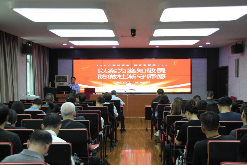 娄刚警长以《以案为鉴知敬畏,防微杜渐守师德》为题,详细介绍了全国职务犯罪总体情况、职务犯罪类型、新变化和出现原因。结合大量典型案例,教育引导全体党员干部要以反面典型为镜鉴,认识违反党的政治纪律和政治规矩的严重危害,努力保持政治定力、严守原则底线、坚持严于律己,为大家带来了一堂生动的警示教育课。