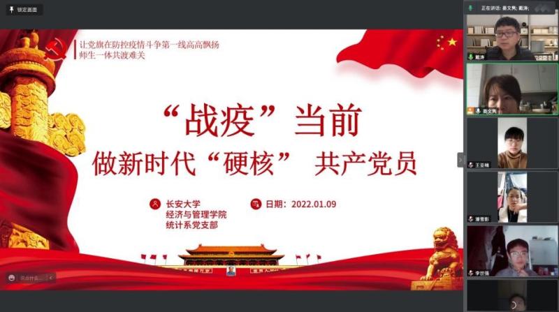 为进一步强化疫情防控期间员工的心理健康疏导和援助,1月9日统计系支部召开题为“师生一体,共渡难关”疫情防控专题会议,统计系2018级和2019级本科生全体员工党员和员工干部参加会议。会议由统计系党支部书记晏文隽主持。