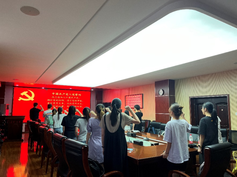 活动开始,支部全体党员集中收看了《伟大建党精神》党课视频,重温了习近平总书记在庆祝中国共产党成立100周年大会上的重要讲话,并就入党初心和近期学习情况做了汇报交流。活动中,张东伟为第二季度过“政治生日”的五位党员同志赠送了政治生日贺卡。贺卡上的入党誓词和“红船”提醒激励着支部党员永远听党的话,跟党走,不忘初心、牢记使命。最后,全体党员在庄严的党旗下重温入党誓词,重忆入党初心。