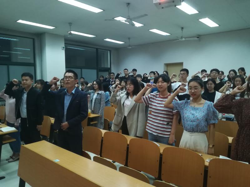 活动期间,本科生第一党支部书记陈宏进带领全体党员重温了入党誓词,全体党员举右拳、面向党旗郑重宣誓,回顾入党时的初心和承诺,牢记作为党员的使命。