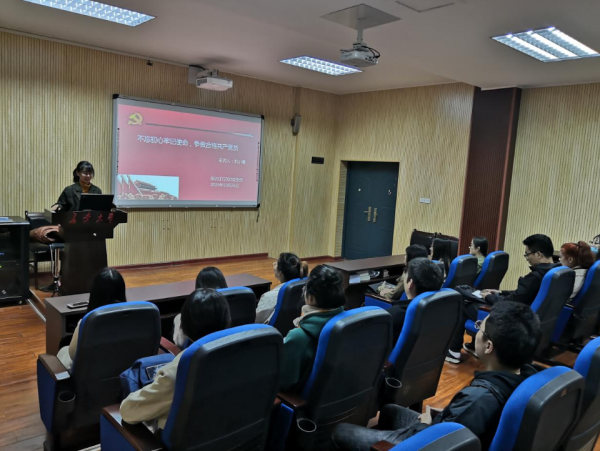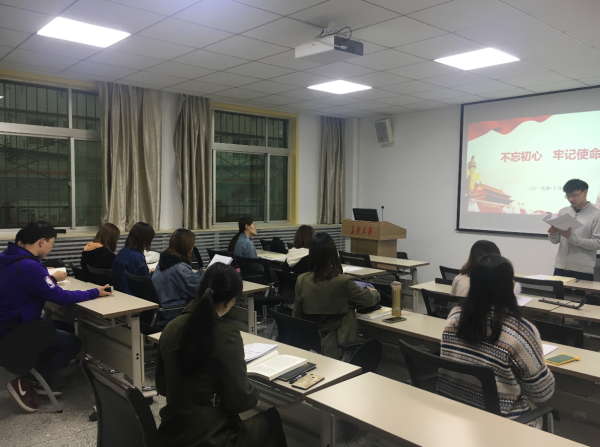 研究生各党支部均认真开展了“不忘初心、牢记使命”专题党课,全体党员深入学习了习近平总书记在“不忘初心、牢记使命”主题教育工作会议上的重要讲话精神,深刻理解了开展主题教育的重大意义。如在研20172302党支部开展的支部书记讲党课活动上,支部书记向支部全体党员做了题为“不忘初心、牢记使命,争做合格共产党员”专题报告,指出作为一名党员,要提高自身的党性修养,做到思想上纯洁、政治上坚定,心中有定力、行为有规范,处处发挥先锋模范作用,为他人树立榜样,为社会主义建设贡献自己的一份力量。