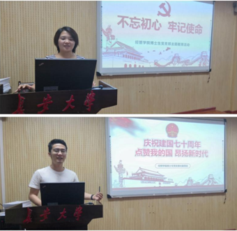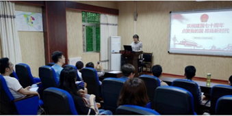 70年,神州崛起,百业兴旺。适逢新中国成立70周年之际,为弘扬以爱国主义为核心的民族精神、深入学习和贯彻习近平总书记重要讲话精神,不忘初心、牢记使命,进一步加强支部党员的思想道德教育,激励支部党员的爱国主义热忱,英国上市公司365博士生党支部于2019年10月1日在英国上市公司365601室举办了“不忘初心、牢记使命”系列爱国主题党日活动之“点赞我的国昂扬新时代”。活动由支部书记姜亚宏主持,支部全体党员参与。