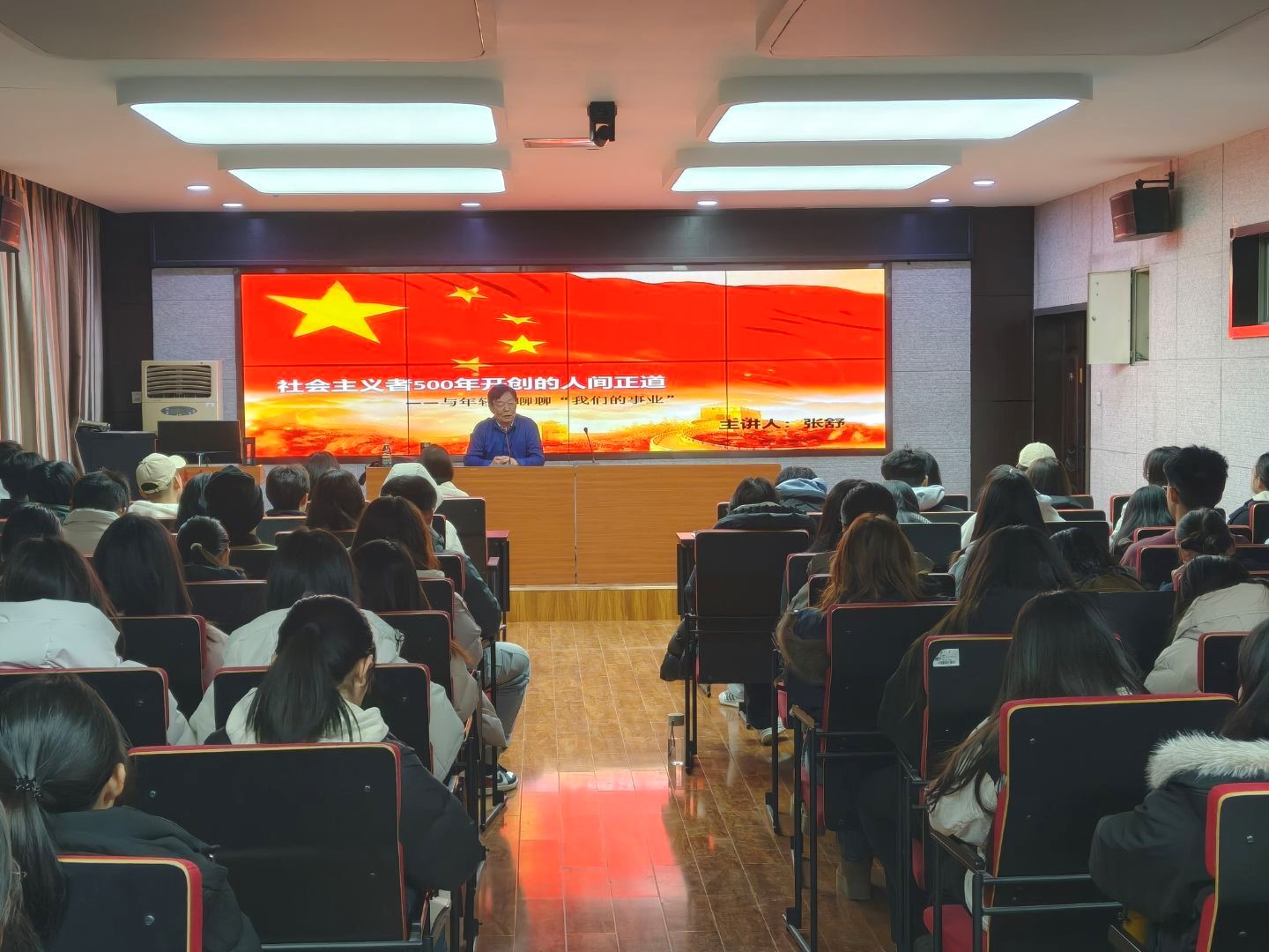 张舒老师以《社会主义者500年开创的人间正道》为题,围绕科学社会主义的理论构想、发展历程与中国的实践探索进行系统阐述,重点阐释了中国共产党对社会主义道路的探索与发展以及科学社会主义在中国特色社会主义事业中的成功实践。